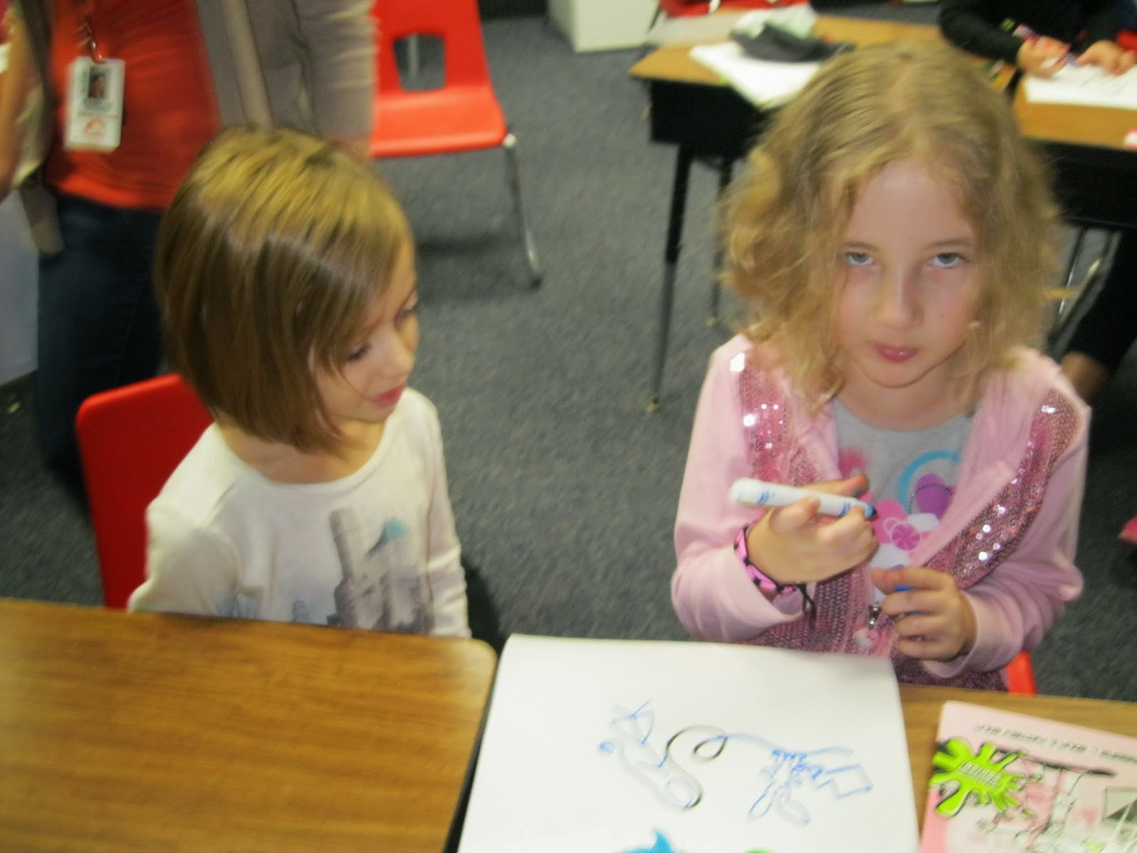 This afternoon we spent some time synergizing with our 3rd grade buddies. We created pictures from a single scribble that represented both our ideas and personalities. The children used structures from writing/reading (planning, drafting, side by side partner conversations) as they completed the task together. They ended the time exploring non-fiction texts with their partners to determine the difference between interesting information and important (main idea) information.